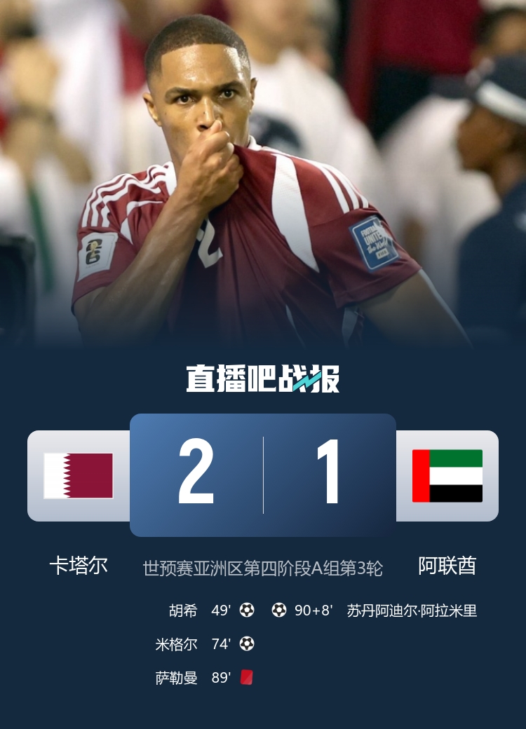 在北京时间10月15日凌晨进行的世预赛亚洲区第四阶段A组第三轮中,卡塔尔展现了顽强的斗志,以2-1击败了阿联酋,首次通过预选赛晋级世界杯。比赛过程中,阿菲夫成为了赛事的亮点,他不仅在上半场频频制造威胁,下半场还通过任意球送出两次助攻。