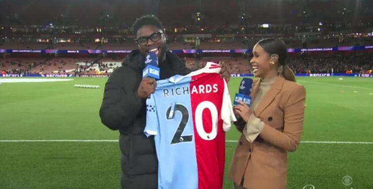 10月23日,《太阳报》传来消息,前足球明星理查兹收获了一件独特的球衣,这件球衣巧妙地将曼城与阿森纳的元素结合在一起。在当地时间的一个晚上,37岁的理查兹被邀请担任阿森纳与马德里竞技之间欧冠大战的现场评论员。当他站在镜头前准备解说时,节目组给他送上了一份别出心裁的礼物。