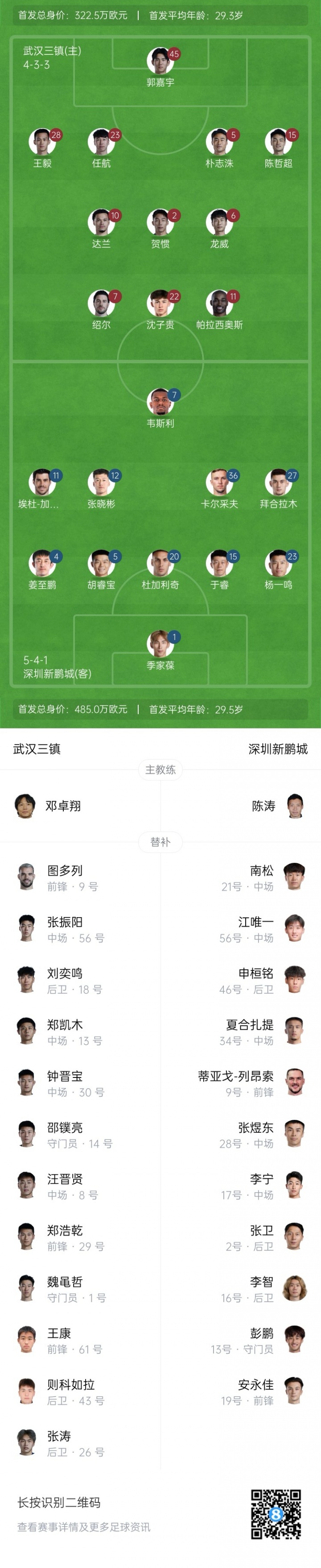 在10月24日的中超联赛第28轮中,武汉三镇和深圳新鹏城将于19:35激战。这场比赛备受瞩目,双方球队在赛前的首发阵容也正式揭晓,引发了球迷们的热切期待。