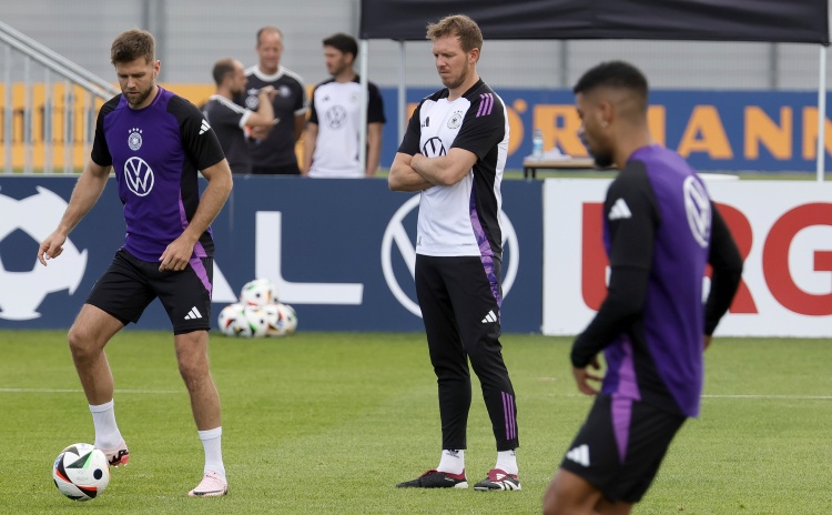 对于世界杯前的最后一场热身赛,德国队的对手将是东道主之一的美国队。而在备战期间,德队仍将在阿迪达斯位于德国赫尔佐根奥拉赫的“Home Ground”训练基地进行集训,预计这是他们最后一次在那里集训,因为德国队即将从阿迪达斯更换为耐克作为装备供应商。自本周一开始,德国队已经在沃尔夫斯堡集中备战最后的两场预选赛。纳格尔斯曼对25人的阵容提出了明确要求:在一对一对抗中要更加具备力量,进攻时要勇敢果断,防守时则要强化身体对抗。