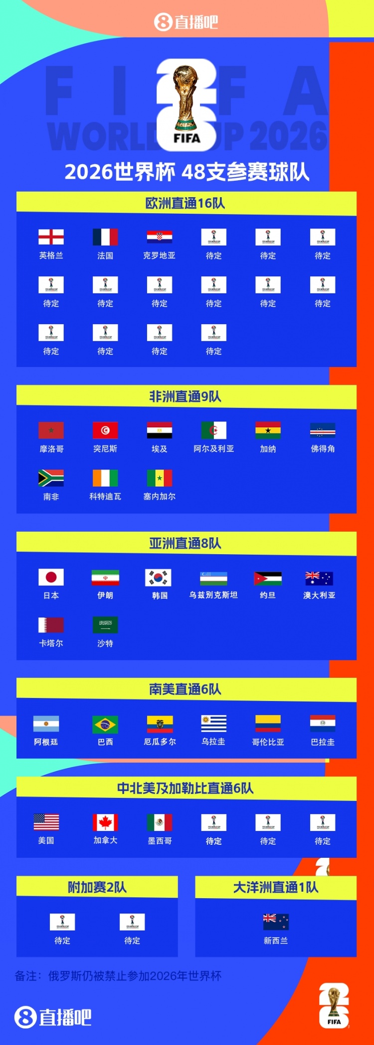 此外,两个参加跨洲附加赛的队伍为新喀里多尼亚与玻利维亚,继续为争夺名额而战。各支球队在残酷的竞争中,屡屡拼搏,彰显出体育竞技的魅力与精彩。
