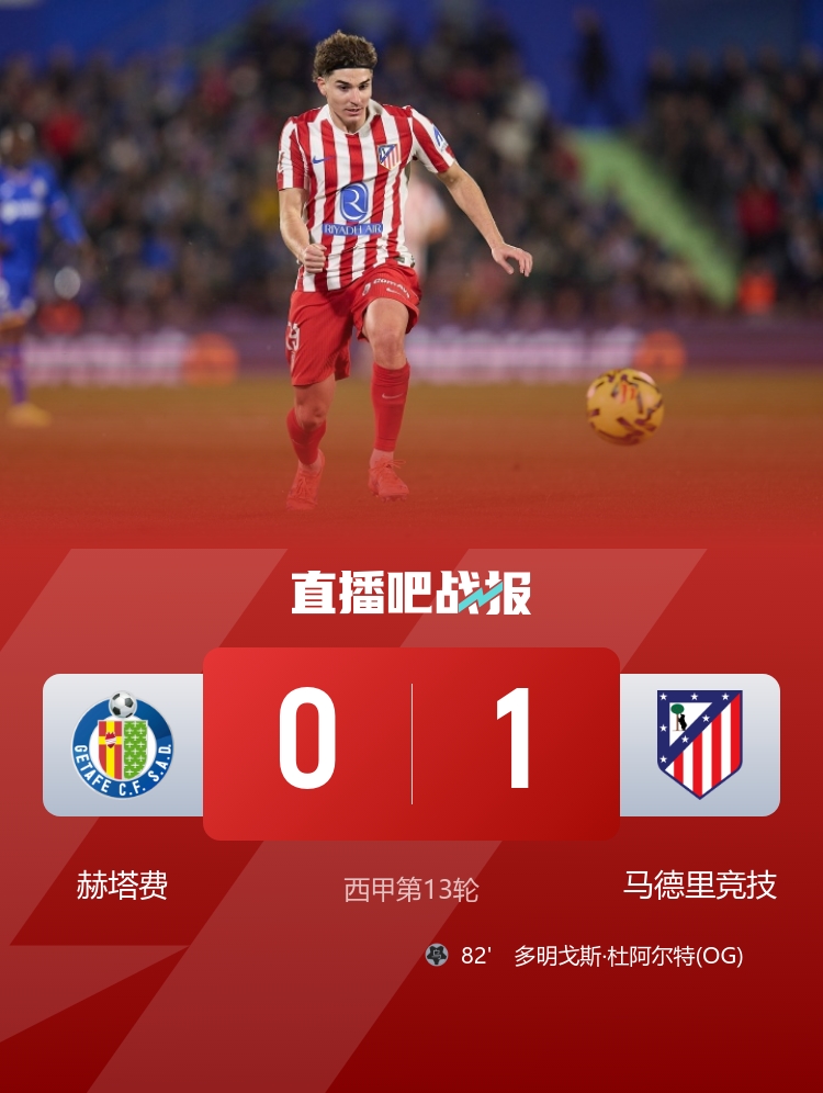 在2025-26赛季西甲第13轮的较量中,马德里竞技在阿方索·佩雷斯球场客场对阵赫塔费。经过激烈的90分钟较量,马竞以1-0小胜对手,因而延续了自赛季开赛以来的强势状态,取得了联赛五连胜并且保持了12轮不败,目前以28分位居联赛第4,距离领头羊巴萨仅差3分。