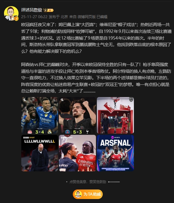 而在阿森纳与拜仁的巅峰对决中,我们见证了枪手的飞跃。作为赛季以来唯一保持全胜的球队,他们凭借高强度的压迫与丰富多彩的进攻战术,成功送给了拜仁本赛季的首次失利。尽管阿尔特塔的换人略显迟疑,左路防守一度承受巨大的压力,但替补球员的精彩表现迅速改变了局面,俨然是一场剧本般的转折。下半场的两个进球皆由替补球员完成,这不仅彰显了阿森纳的深厚阵容,也让支持者们对双冠梦充满憧憬。