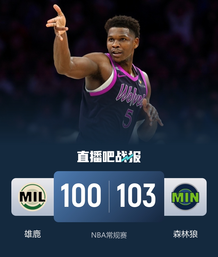 此次比赛的结果使森林狼继续稳居季后赛区,而雄鹿则需要尽快调整状态,寻求反弹。