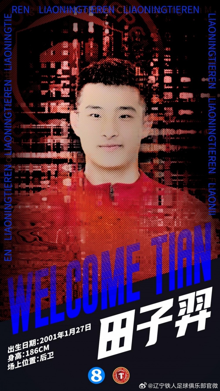 经过友好协商,田子羿正式加盟辽宁铁人足球俱乐部,从即日起履行球队成员的职责。