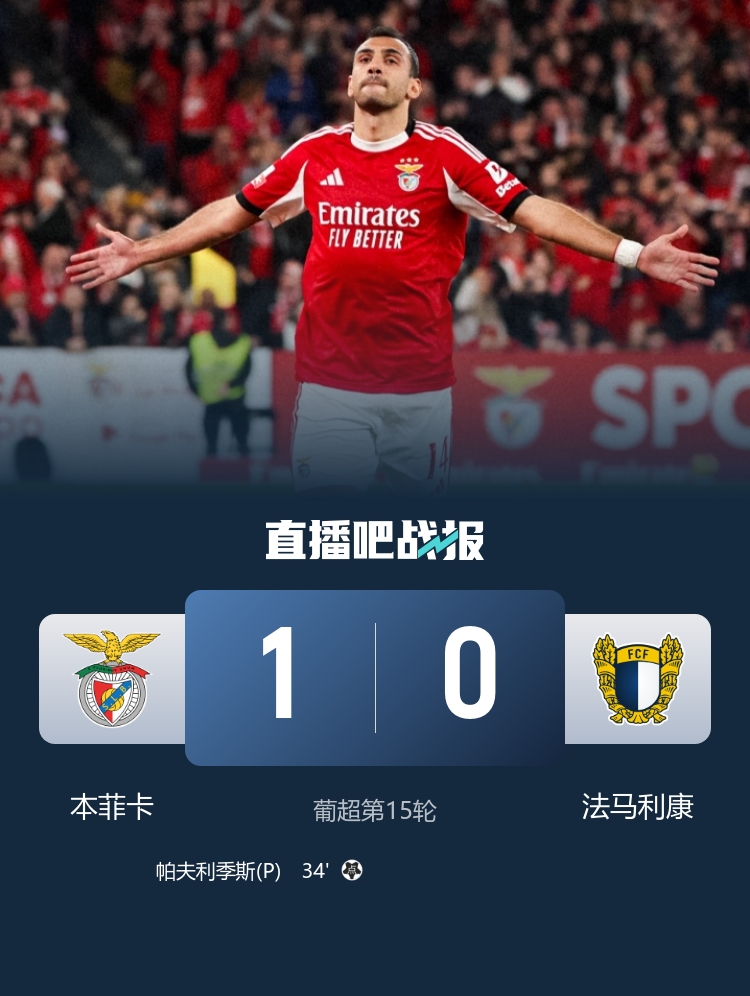 在2025-26赛季葡超第15轮的一场较量中,本菲卡在光明球场以1-0小胜法马利康,继续保持联赛不败的势头。比赛开场不久,奥塔门迪在禁区内受到肘击,经过VAR确认后,裁判判罚了点球。帕夫利季斯不负众望,稳健主罚命中,为主队首开纪录。