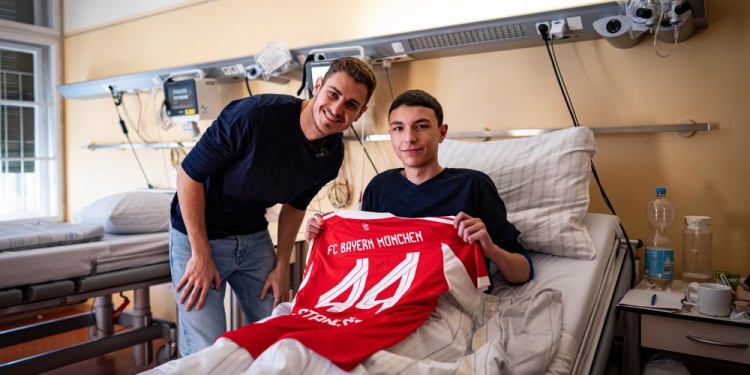 孩子们的眼中闪烁着期待和快乐,斯塔尼西奇为他们准备了满满一袋的心意:拜仁泰迪熊的可爱、亲笔签名的球衣、温暖的围巾,还有甜美的糖果,仿佛将整个圣诞的魔力都带来了。他与小朋友亲密互动,品味着故事书带来的奇幻旅程,聊着足球的梦想,甚至看着孩子们表演精彩的魔术,让原本凶险的病房,都洋溢着欢声笑语。