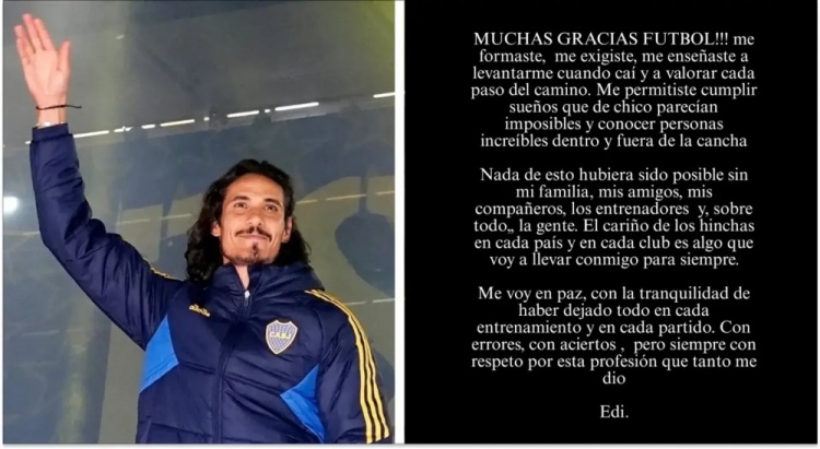 12月29日讯 据Tribuna报道,乌拉圭前锋卡瓦尼退役的消息实属恶作剧。近日,一则帖子在网络上广泛传播,声称38岁的卡瓦尼已经宣布退役,并附上一张他在Instagram上发布的告别信息的截图。然而,真实情况是,查看卡瓦尼的官方社交媒体账号后,可以发现他并没有发布这样的内容,只有一些与家人共度假期的动态和照片。