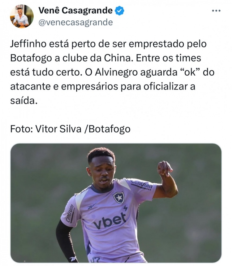 与此同时,桑托斯队也曾对热菲尼奥表示过兴趣,并且向博塔弗戈提交了正式报价。然而,主教练胡安·巴勃罗·沃伊沃达对此表示了明确的反对,认为热菲尼奥的技战术特征可能难以适应桑托斯现有的战术体系,这使得相关的谈判也在一段时间内陷入困境。