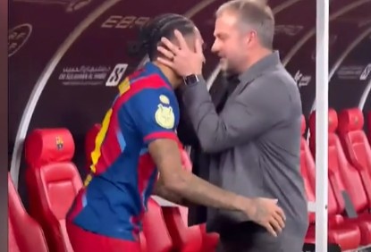 1月12日讯 据《世界体育报》报道,巴萨在沙特举行的西班牙超级杯决赛上以3-2击败皇马,成功夺冠。比赛结束后,拉菲尼亚与主教练弗里克之间深情的拥抱成为了球队当前状态的真实写照。