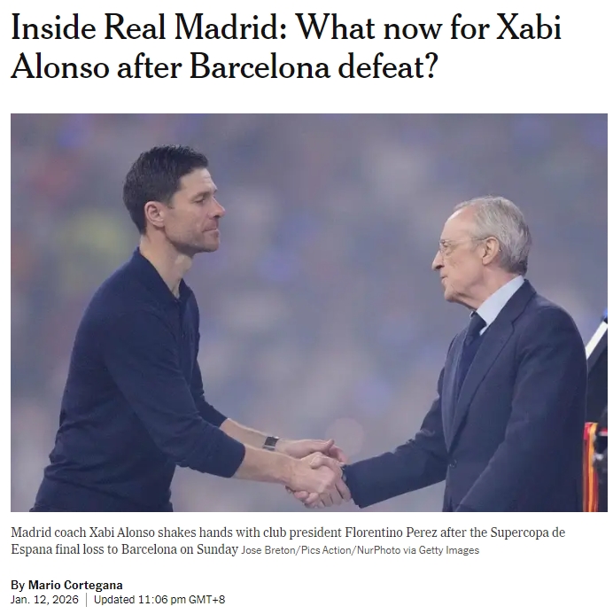 01月13日讯 皇家马德里在今晨正式宣布解除主帅阿隆索的职务。值得注意的是,在这一消息发布前仅两小时,权威媒体《The Athletic》及其记者Mario Cortegana曾报道称,皇马在西班牙超级杯决赛不敌巴萨后并没有认真考虑解雇阿隆索。