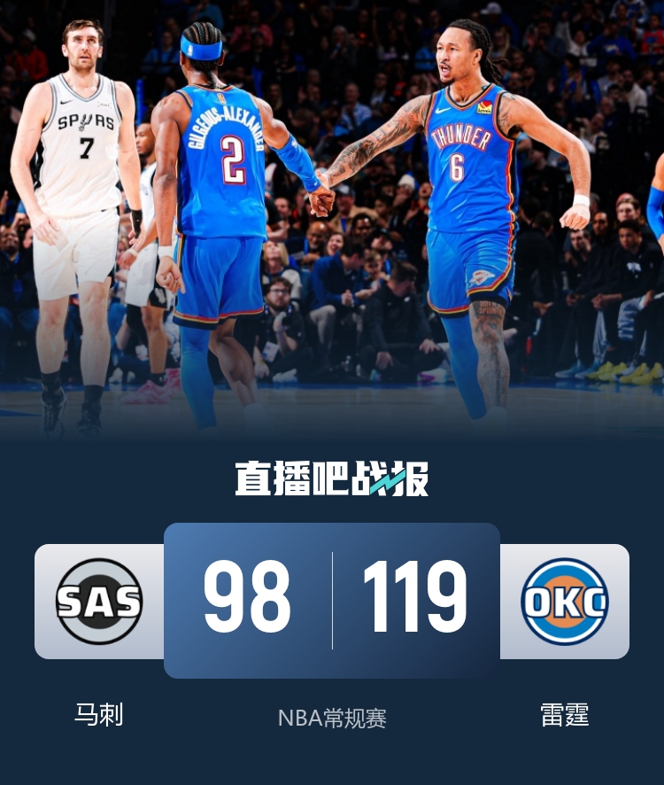 比赛结束,雷霆以119-98轻松拿下胜利,喜迎四连胜,而马刺则面临两连败的尴尬境地。这场比赛不仅是雷霆风头劲爆的证明,更是马刺在铁桶阵面前的一次狼狈背影。看来在西部的争夺战中,马刺得赶紧找到应对之策,否则他们的季后赛之路可真是岌岌可危了。