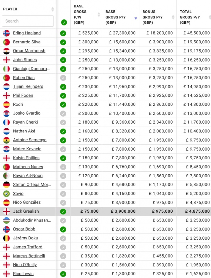 根据记者Alex Crook的最新报道,格伊在曼城的周薪达到了30万英镑,这让他在球队的薪资排行中名列并列第二。具体来看,哈兰德以每周52.5万英镑高居榜首,展现出了顶级球星的身价。