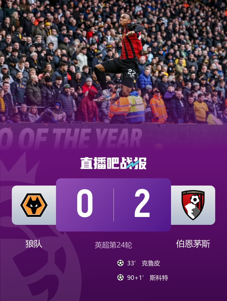 而在补时阶段,伯恩茅斯的斯科特像是在给狼队送上最后一刀,以一记“决定胜负”的进球,将比分锁定在2-0。一场比赛下来,狼队的表现让人心痛,但伯恩茅斯似乎如鱼得水。正当狼队期待翻盘时,他们却被这场比赛的结果狠狠地浇了冷水。