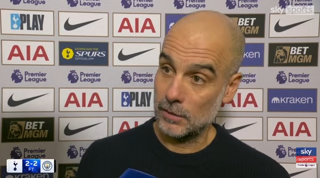 在英超第24轮的焦点战役中,热刺与曼城以2-2握手言和。然而,热刺首个进球的判罚引起了较大的争议,成为赛后讨论的热点。在赛后的采访中,曼城主帅瓜迪奥拉对此进球进行了简短而集中的回应。