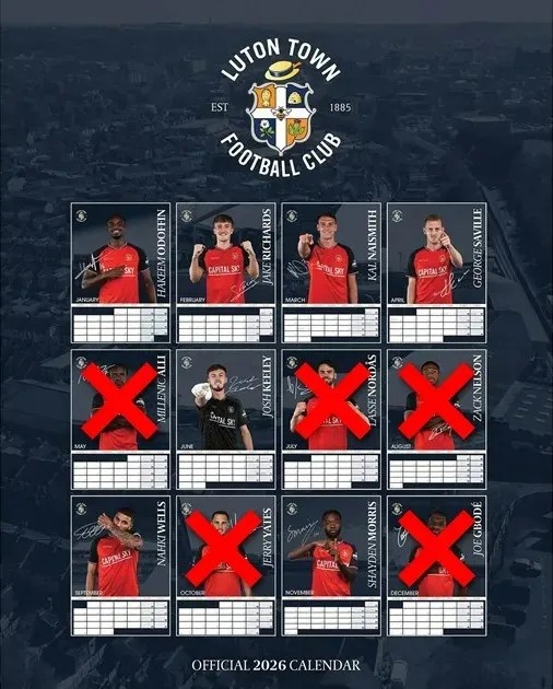 2月4日讯 《太阳报》报道,卢顿俱乐部年初发布的2026年日历,目前已失去了五名球员。与其他俱乐部类似,卢顿的日历每月印有一名球员,但迄今为止,12名参与球员中已经有5名离开了队伍。