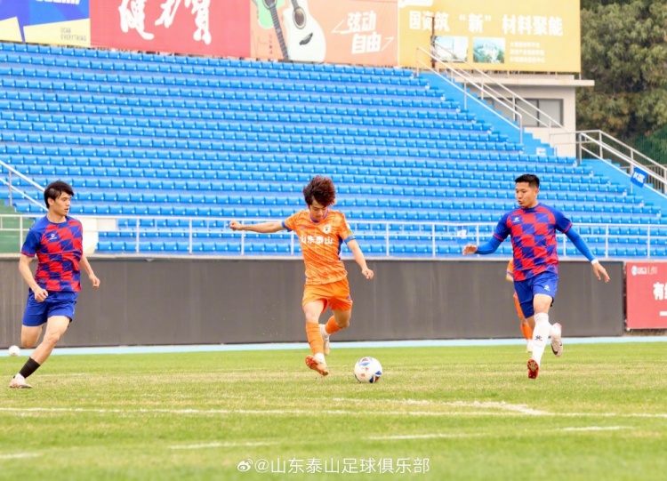 今天下午3点,山东泰山B队在佛山三水进行冬训期间,与泰安天贶队进行了一场热身赛,比赛分为上下两个45分钟。