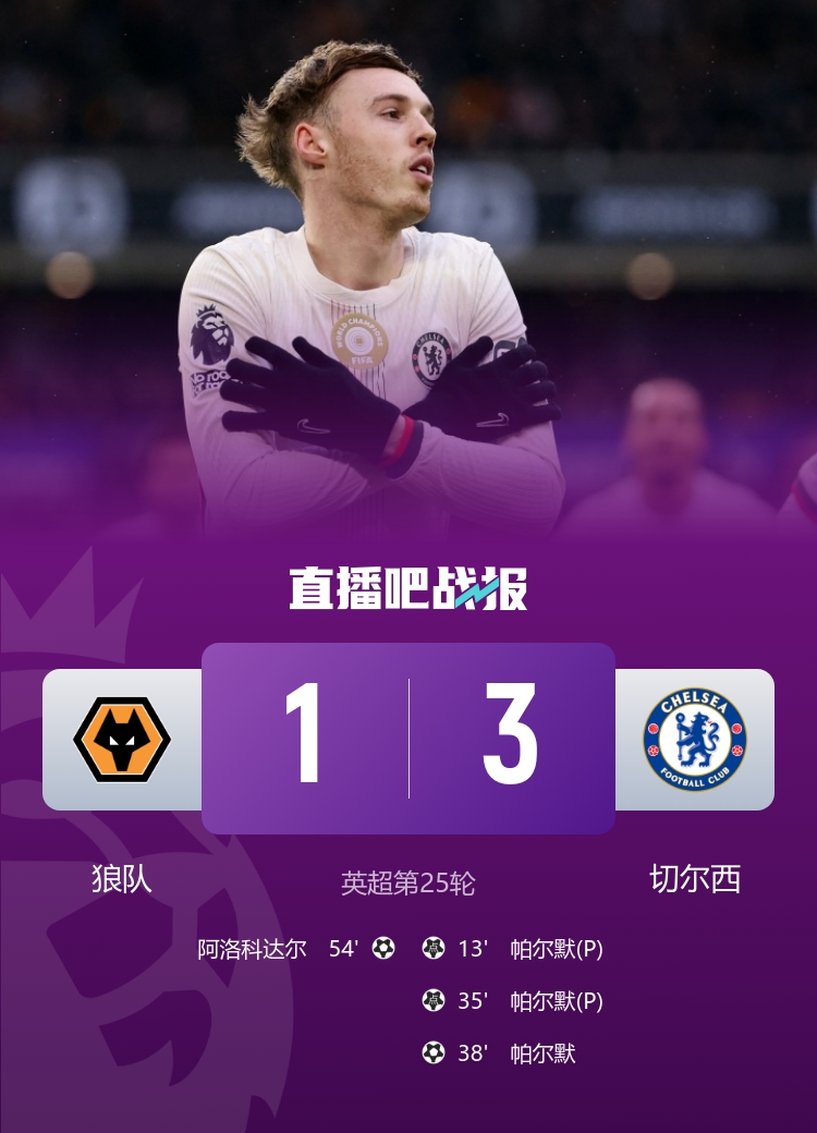 下半场狼队并未轻易放弃。第54分钟,借助角球机会,他们制造混乱,阿洛科达尔抓住机会,转身射门为球队扳回一球,势头稍有回暖。然而,切尔西凭借良好的表现,确保了胜利,最后以3-1结束了比赛,延续了他们四连胜的佳绩。