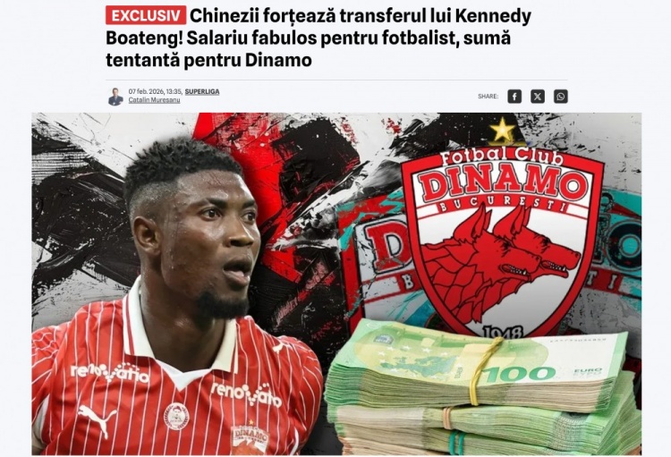 近期,博阿滕在对康斯坦察灯塔的比赛中梅开二度的出色表现,引起了中国某俱乐部的关注,他们愿意在冬窗期间为这名后卫支付50万欧元的转会费。这一报价对迪纳摩来说极具吸引力,而对于博阿滕本人而言,他将获得超过迪纳摩现有合同的待遇:月薪将提升至5万欧元,并且还会获得一笔签字费。