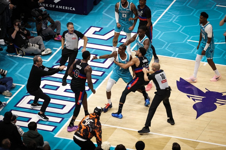 经过一阵喧嚣,最终裁判不得不采取行动,四位关键球员,迪亚巴特、布里奇斯、杜伦和斯图尔特相继被罚出,比赛的气氛已然无法恢复。赛场上的激情与暴力交织,成为了篮球这项运动中难以磨灭的一道伤痕,令人深思与反省。