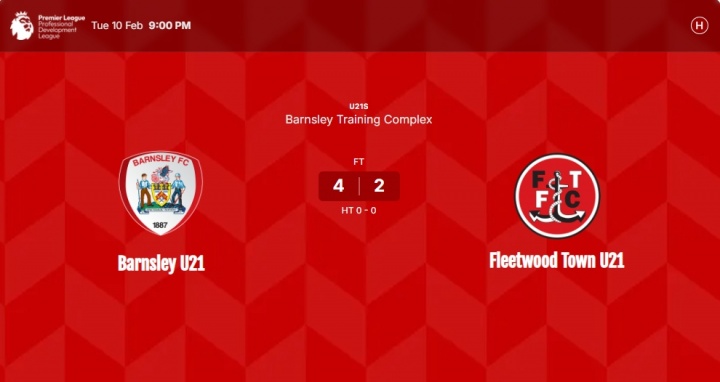 根据当地媒体《巴恩斯利纪事报》的报道,徐彬在2月12日的职业发展联赛中代表巴恩斯利U21出战,球队以4-2的比分逆转击败了弗利特伍德U21。这场比赛是巴恩斯利U21本赛季的重要一战,而徐彬的表现也为球队注入了新的活力。此役过后,巴恩斯利U21将于2月17日21点(北京时间)在客场挑战哈德斯菲尔德U21,期待徐彬继续展现他的才华。