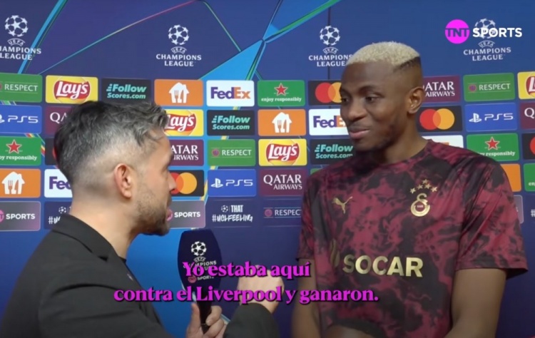 2月18日讯,在欧冠1/8决赛的首回合中,加拉塔萨雷在主场以5比2战胜尤文图斯,赛后前锋奥斯梅恩接受了TNT体育的采访。