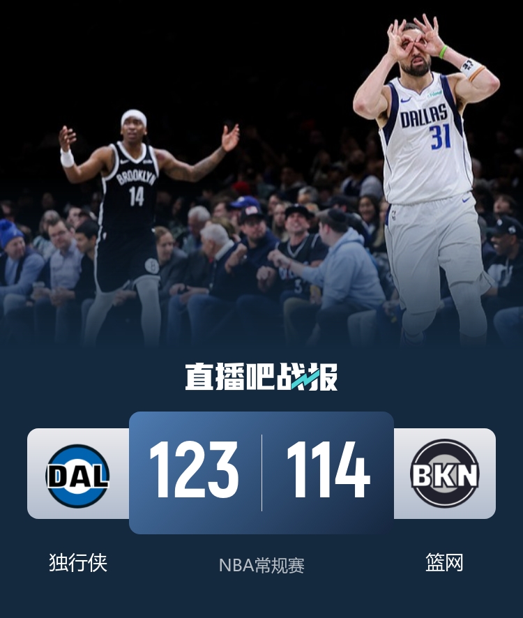 最后一节,曼恩连续命中,为篮网的反攻注入了新的希望,比分也随之逼近。尽管独行侠稳扎稳打,稳稳守住分差,但双方的竞争依然激烈。最终,独行侠以123-114的比分锁定胜局,让篮网遗憾收场。