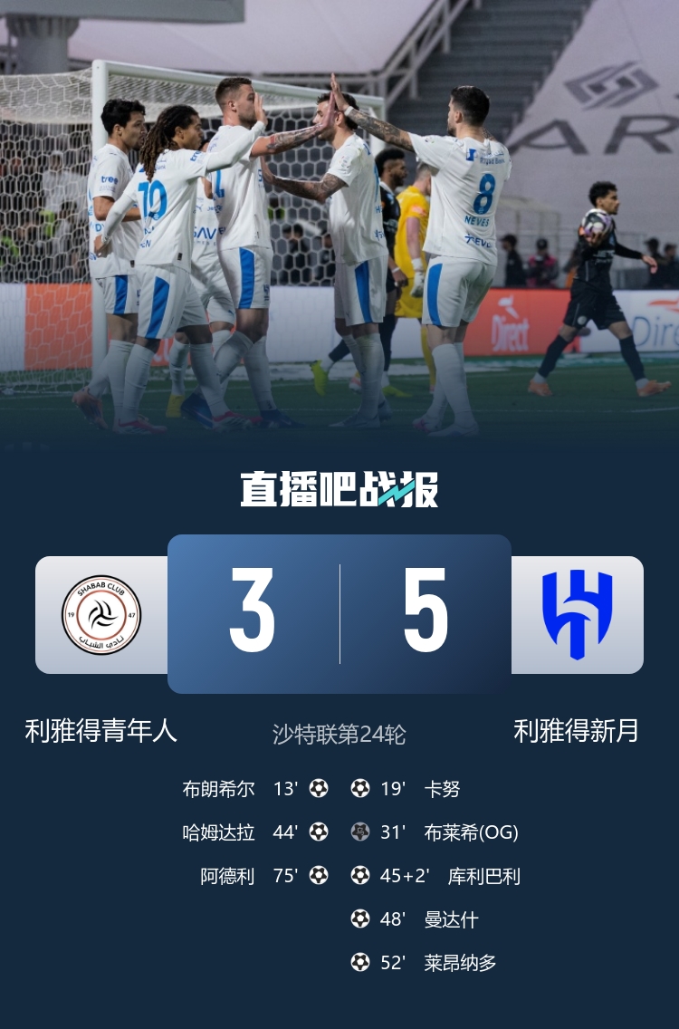 尽管利雅得青年人试图反击,通过亚斯拉姆的助攻,阿德利在第75分钟为球队打入一球,但最终未能改变战局,比赛以5-3的结果落幕。