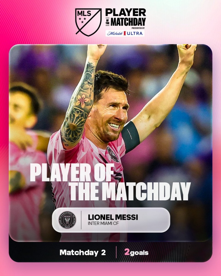 在最近的一场比赛中,梅西贡献了2个进球和1次助攻,帮助迈阿密国际客场以4-2逆转奥兰多城,展现了他出色的比赛状态。凭借这一精彩表现,梅西荣膺美职联第二轮比赛的最佳球员奖项。