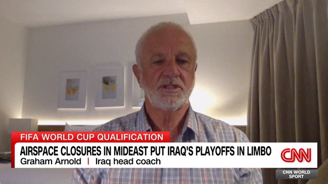 伊拉克国家队的主教练阿诺德在接受CNN采访时透露,球队的主要成员以及教练组的所有成员,恐怕要被困在国内直至比赛的次日4月1日,因为伊拉克的领空正在关闭。他坦言:“眼下的压力不小,这确实是一个极大的挑战。现阶段我制定了大约四到五套不同的应急方案,但它们的可行性各不相同。为了这个事情,我无数个不眠之夜都在思考怎样才能保证计划顺利落实。”