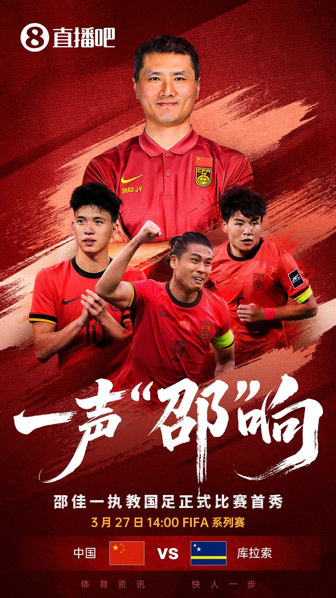 3月27日下午2点,中国男足将在澳大利亚悉尼的体育场与库拉索进行FIFA系列赛,这将是邵佳一执掌国足后的首次正式比赛。