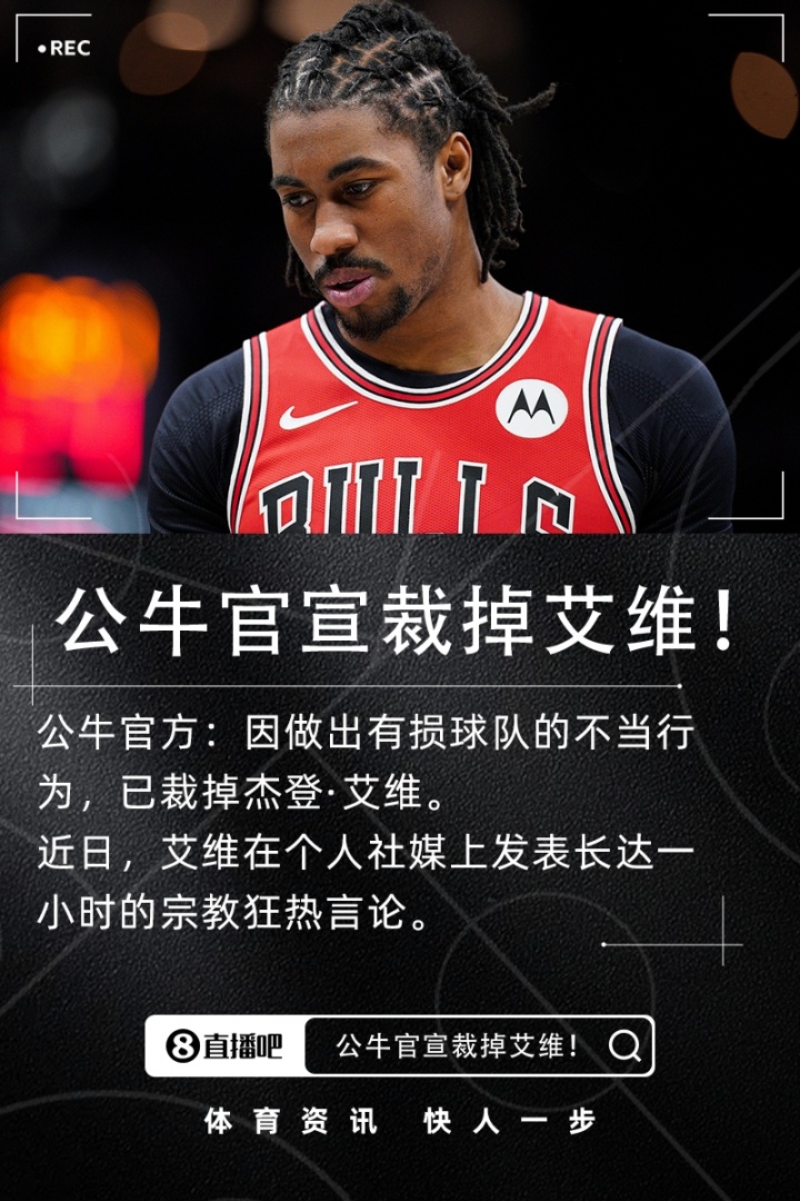 3月31日,公牛队官方宣布,球队已决定解雇后卫杰登·艾维。公牛方面表示:“由于艾维的行为对球队造成了负面影响,球队作出了这个裁员的决定。”