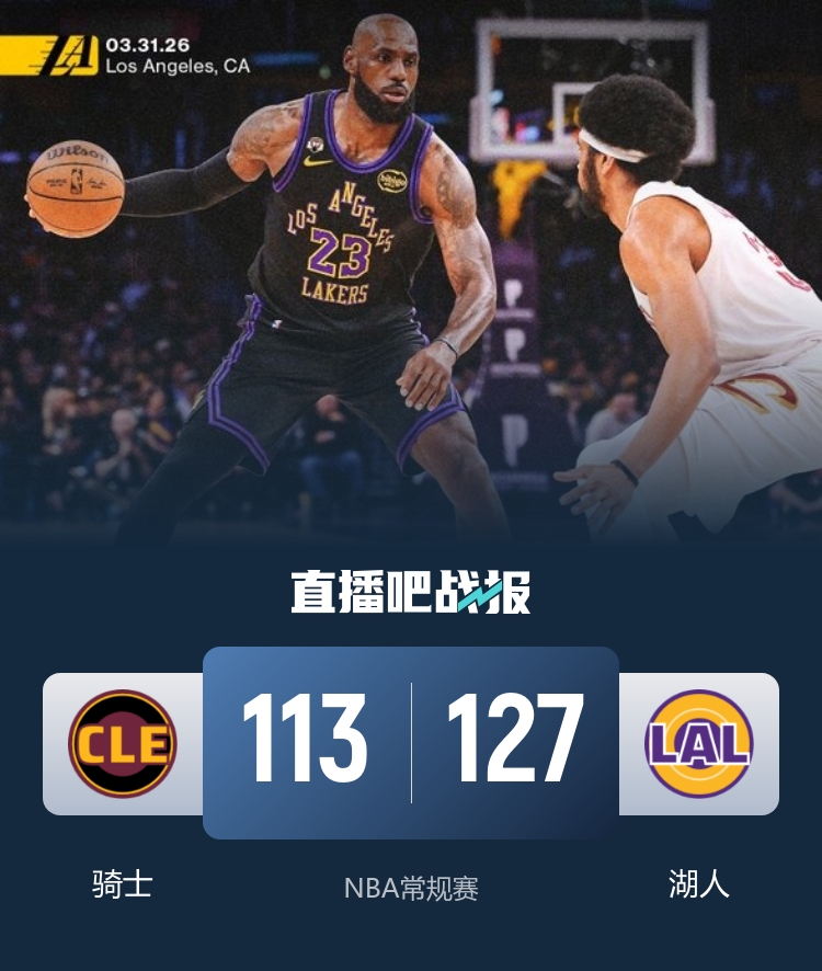 在4月1日的NBA常规赛中,洛杉矶湖人队在主场迎来克里夫兰骑士队的挑战。湖人队在近期状态火热,已经取得三连胜,以49胜26负的佳绩高居西部第三,并成功锁定季后赛席位。而骑士队的战绩为47胜28负,排名东部第四。