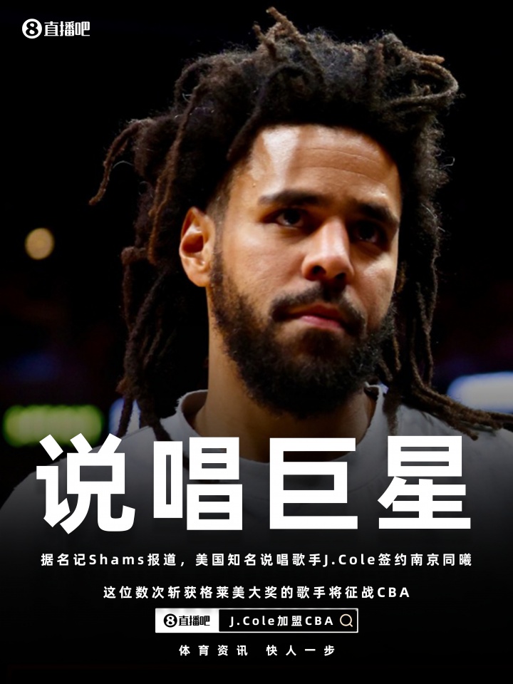知名记者Shams近日报道,著名说唱歌手J.Cole已与南京同曦签约,正式加入中国篮球职业联赛CBA。J.Cole作为多次获得格莱美奖及拥有多张白金唱片的艺术家,早在去年便承诺将在中国参与几场篮球赛事,如今他终于履行了这一承诺。
