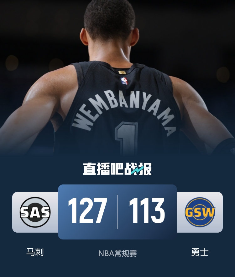 下半场比赛中,勇士的追梦表现不俗,连续投中三分球缩小分差,但马刺的文班亚马、卡斯尔和瓦塞尔都不断在外线发威,始终保持20分左右的领先。勇士的克赖尔在此时连中几记远投,帮助球队将分差追至13分。然而,在末节,文班亚马再度带领球队迅速拉开分差,差距重新达到近20分,随后两队相继轮换替补,比赛进入练兵阶段。最终,马刺以127-113轻松战胜勇士。