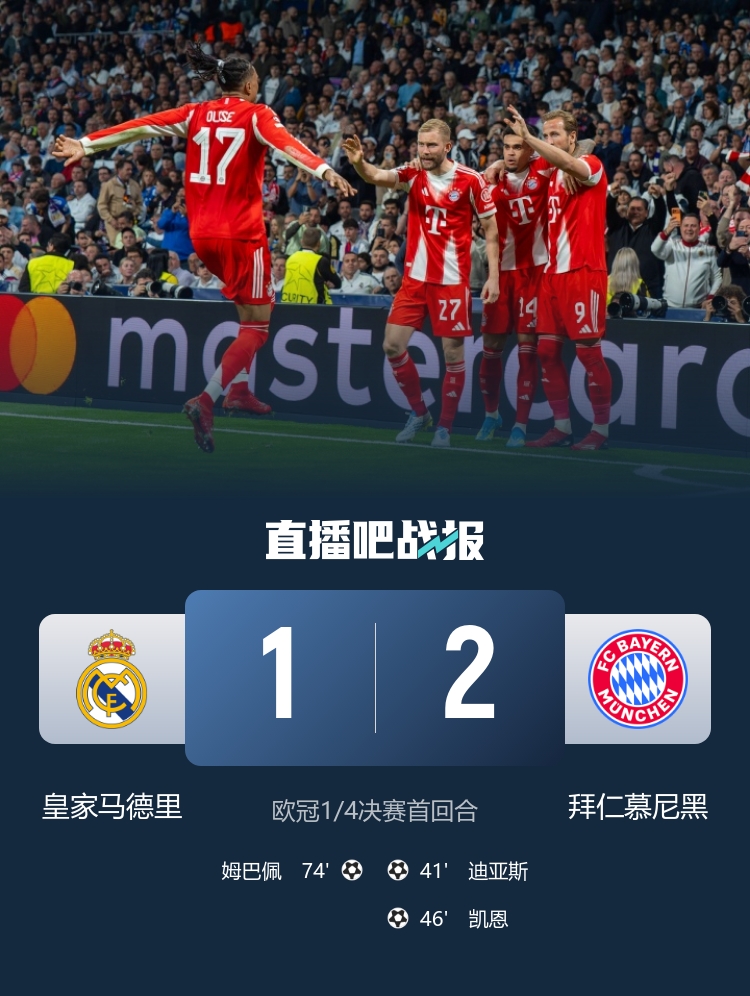 整体来看,拜仁利用皇马防线的失误和自身的进攻优势,成功在客场取得胜利,给接下来的次回合比赛增添了更多悬念。