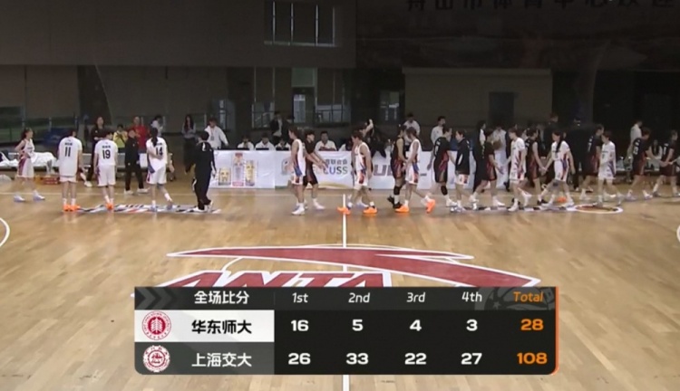 在下半场的较量中,华东师大依然未能找到进攻的节奏,前8分钟只得2分。反观上海交大即便换上替补依然展现出强大的进攻能力,继续通过外线三分扩大领先,刘若欣则是凭借个人能力为华东师大得分,三节结束时,上海交大以81-25领先华东师大56分。